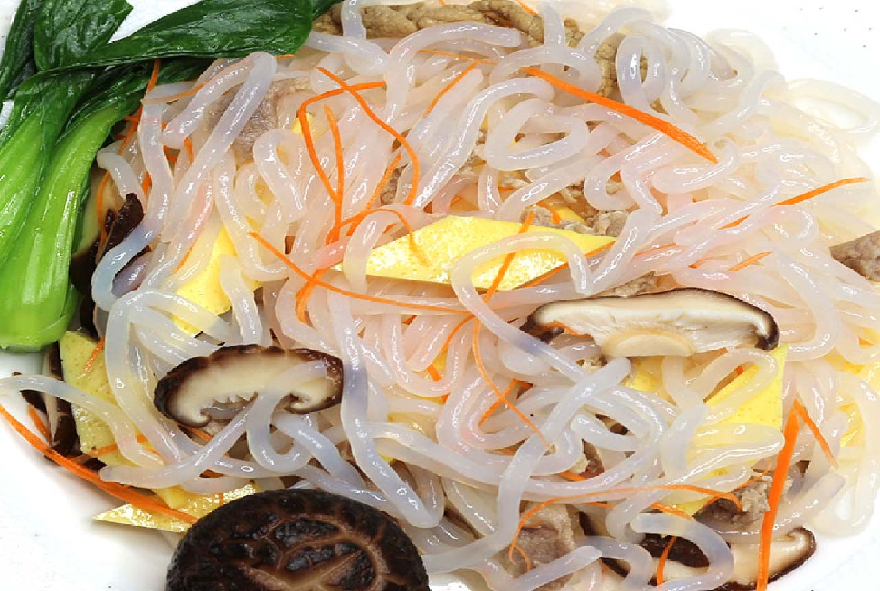 Konjac Udon is one of the Konjac(Shirataki) style noodles which are thick, bouncy and long shape is a natural product, rich in soluble fiber, without fat, sugar, starch and protein, without wheat and gluten, without its own taste, easily absorbs the aroma of additives and spices, quick to prepare, tasty and healthy.